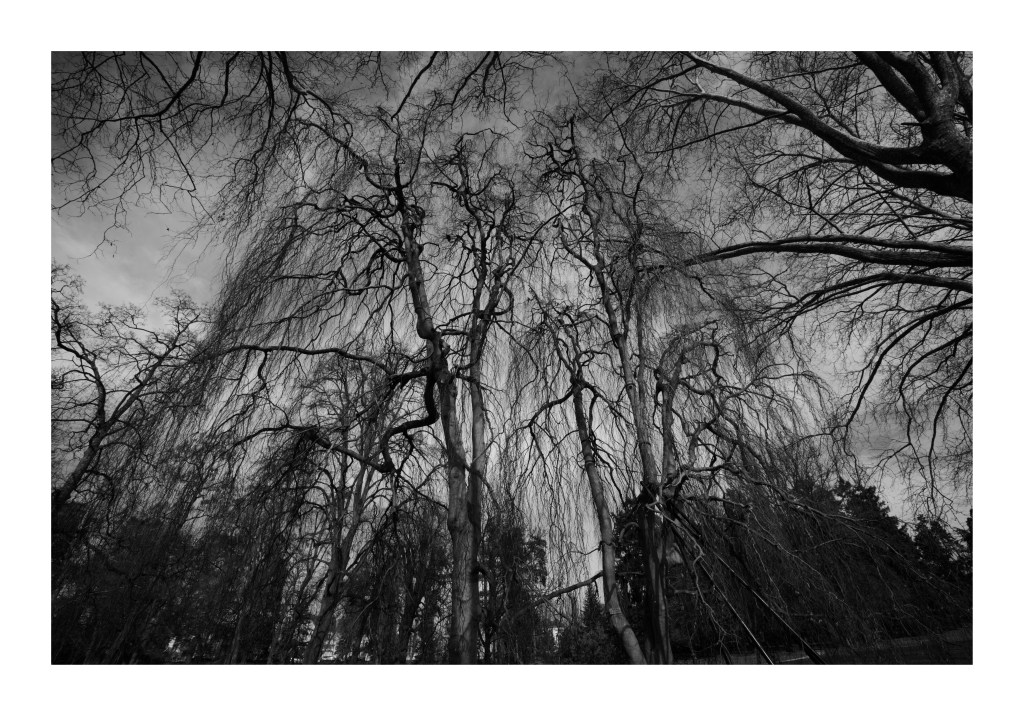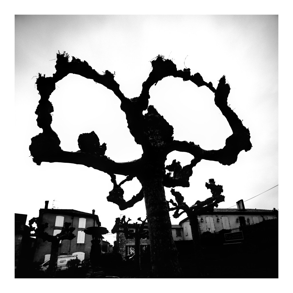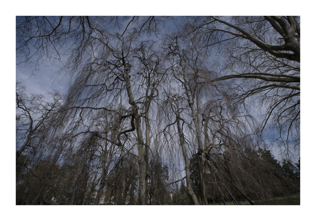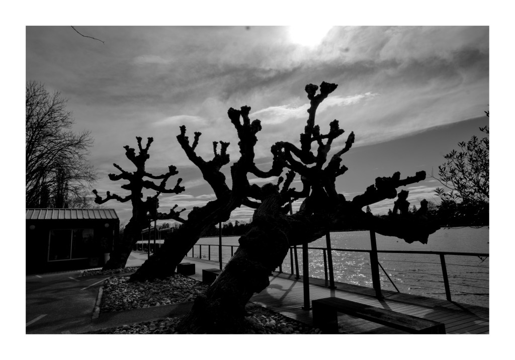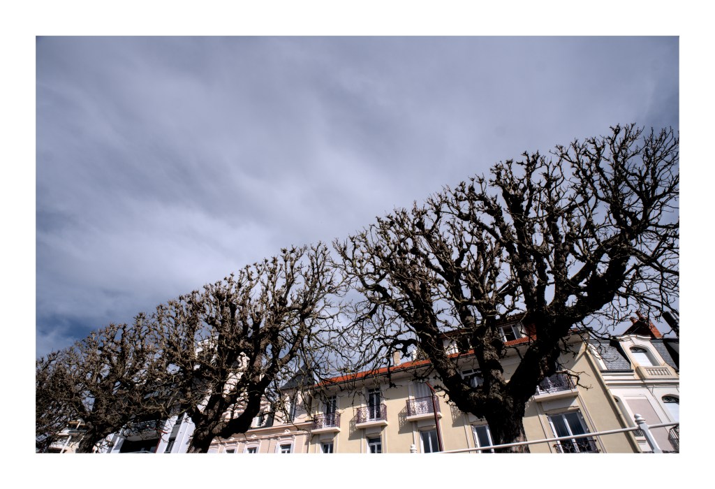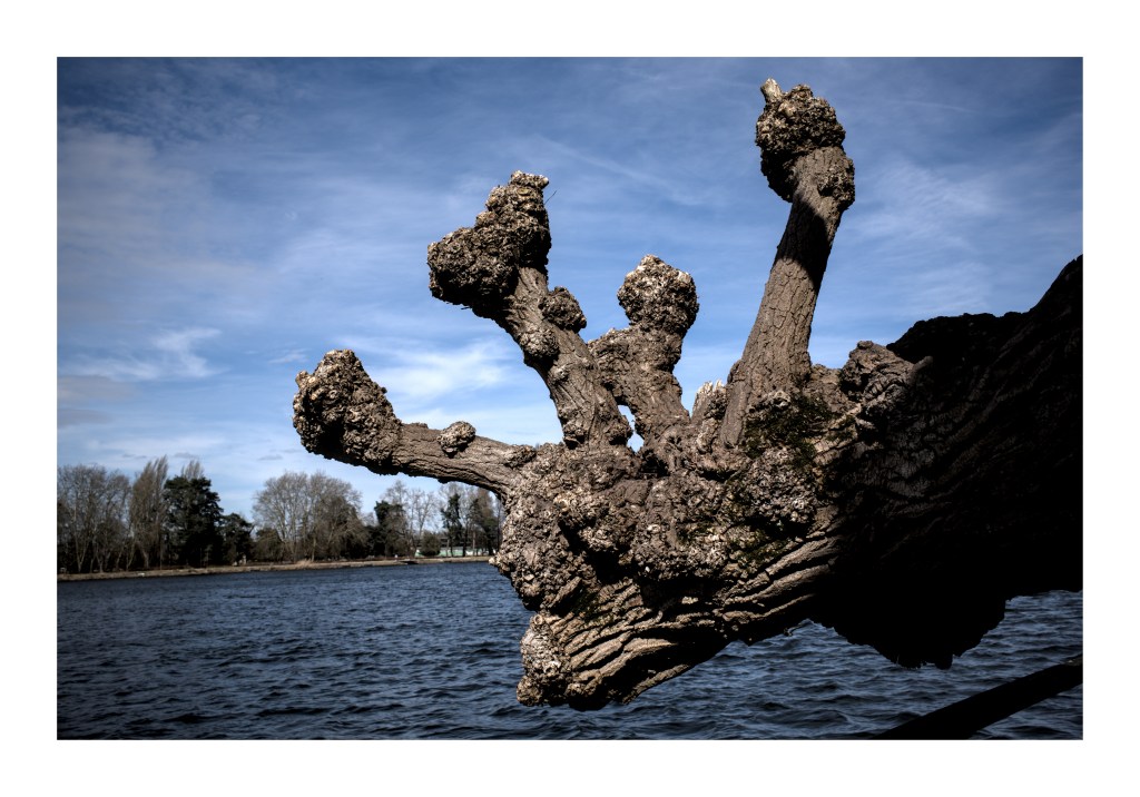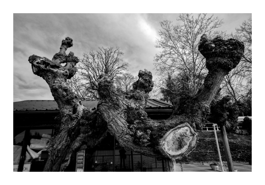 Les autres photos ont été capturées à Vichy sur les bords de l’Allier en plein centre mais aussi au Parc des Bourins à quelques encâbures du centre-ville. Deux mondes forts différents : dans le centre, des arbres domestiqués, souvent mutilés et parfois munis d’attelles. Une sorte de chirurgie autoritaire, très invasive et mutilatrice. La nature, comme les habitants sont contraints. Quelques centaines de mètres plus loin, une végétation libre et luxuriante. Un monde libre en quelque sorte.