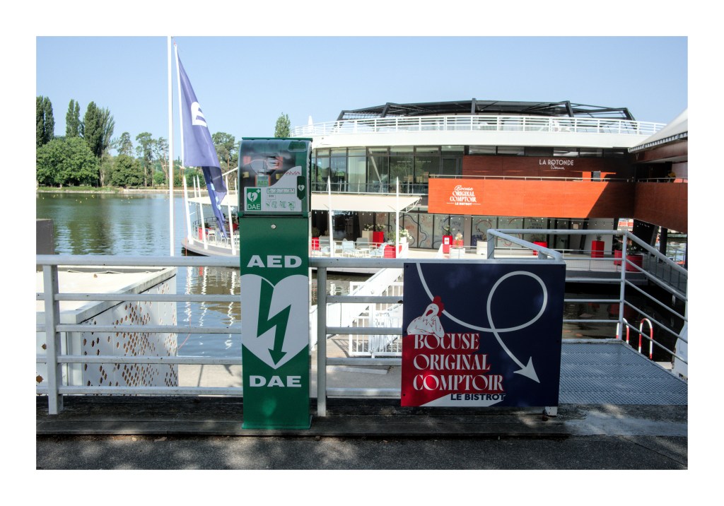 Cliché pris à La Rotonde à Vichy. Encore un exemple de technosolutionnisme présumé… La cuisine imaginée par le Chef Bocuse et sa brigade augmenterait-elle chez les gourmets leurs risques cardiovasculaires ? Au point d’installer un DAE (Défibrillateur Automatisé Externe) en sortie de bistrot ? Ou alors, ce matériel de secours, ne serait-il là que pour conjurer cette peur de la Mort qui inhibe dans l’action (cf Henri Laborit) nos contemporains occidentaux ?